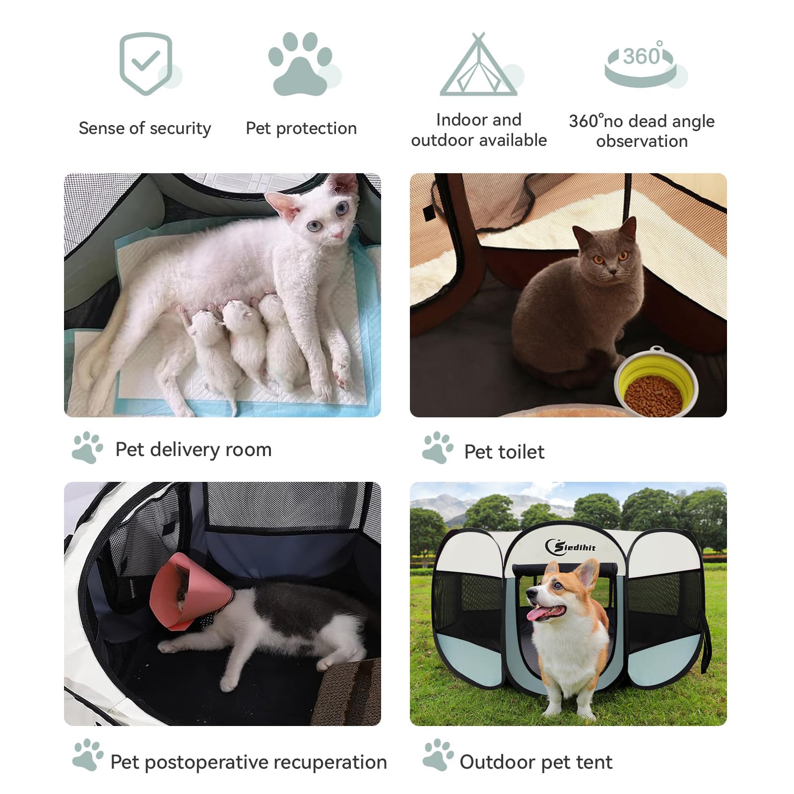 Keep your pet safe and happy with the Siedihit Portable Pet Playpen—a mobile home for play, rest, and travel adventure!